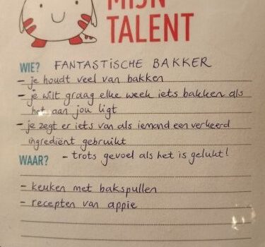In een gesprek met een jongen van 11 jaar komen veel talenten naar voren. Hij vertelt enthousiast wat hij graag doet, waar hij blij van wordt en wanneer de tijd zo vliegt. Ik benoem welke talenten ik denk te horen. De dingen die hij vertelt en de talenten die hij […]